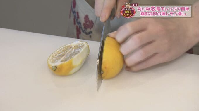 鶏むね肉(1枚)/レモン(1個)/塩(少々)/鶏ガラの素または和風だし(大1と1/2)