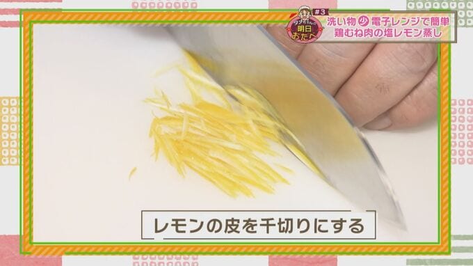 4.レモンの皮をそいで千切りにする。※お好みの量でOK!