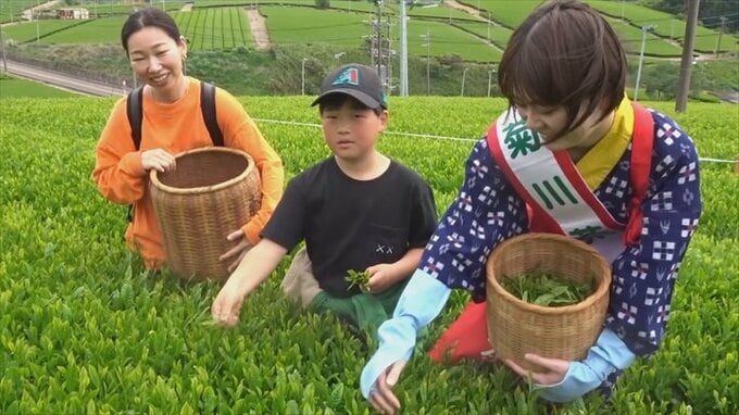 新茶の摘み取りを体験するツアーが静岡県で開催され、山梨県内から多くの親子連れが参加しました。このツアーはお茶の製造販売をする甲府市の春木屋が開いたものです。収穫の最盛期を迎えた静岡県菊川市の茶畑には…