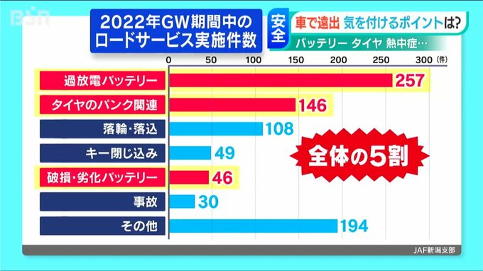 JAF新潟支部によりますと、去年ゴールデンウィーク中の救援依頼は新潟県内だけで830件ありました。