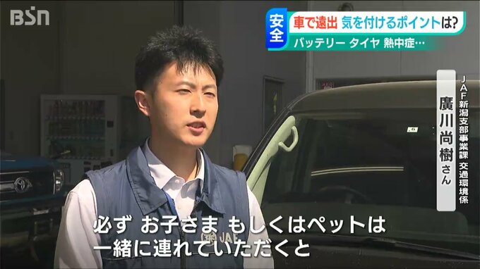 「短時間でも車内の温度は急上昇する可能性がありますので、必ずお子さま、もしくはペットは一緒に車外へ連れていただくと」