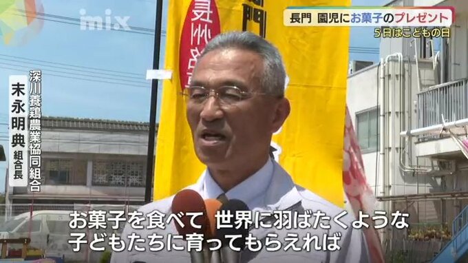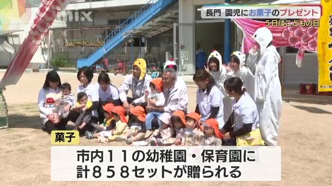 山口県長門市で2日、こどもの日を前に幼稚園児たちに地元で作られた菓子がプレゼントされました。長門市の深川幼稚園に菓子を贈ったのは、深川養鶏です。