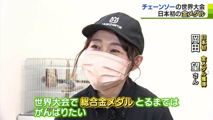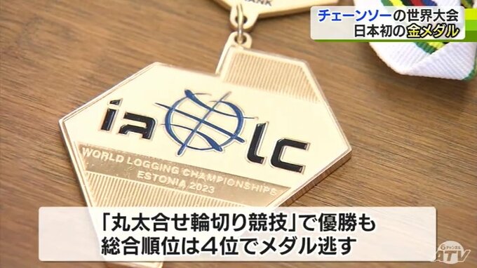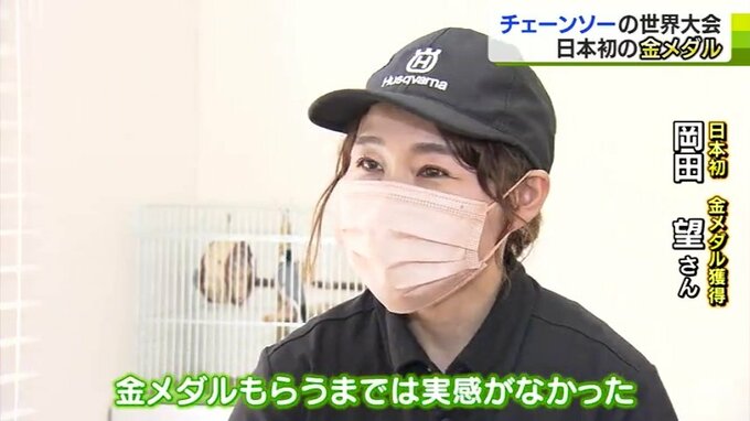 世界でメダルを獲る!この目標を掲げてからおよそ1年。岡田さんは、見事、日本人初の金メダルを獲得し、「有言実行」を果たしました。ただ、このメダルは「丸太合せ輪切り競技」の1種目であり、5種目の総合順位では惜しくも4位でメダルを逃しました。