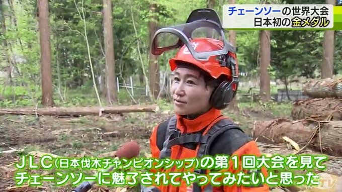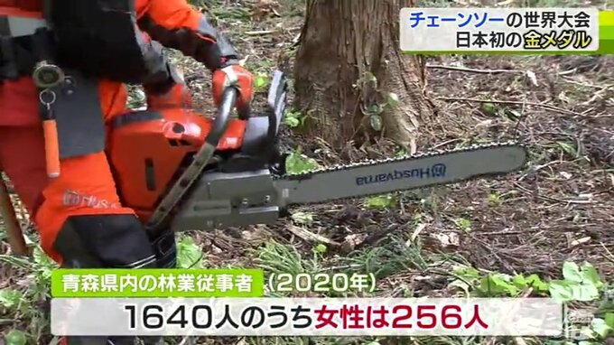 チェーンソーで木を切る技術の速さや正確さ、安全性を競う世界大会が4月、エストニアで開催され、この大会に初めて出場した青森市の女性選手が日本勢として初めての金メダルを手にしました。