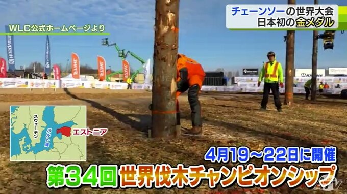 バルト海に面し北欧の国・エストニアで4月19日から22日まで4日間にわたって開かれた「第34回世界伐木(ばつぼく)チャンピオンシップ」