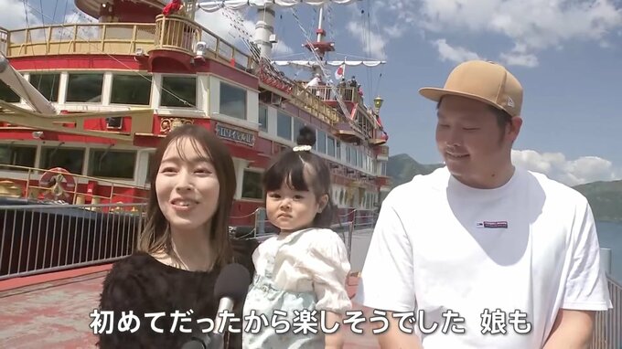 箱根・芦ノ湖の遊覧船には乗客の列!記念写真を撮る親子連れも…
