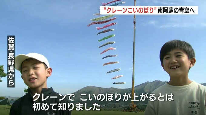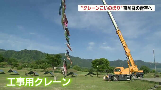 「こどもの日」を前に、熊本県南阿蘇村ではちょっと変わった方法で大きな鯉のぼりが上がりました。