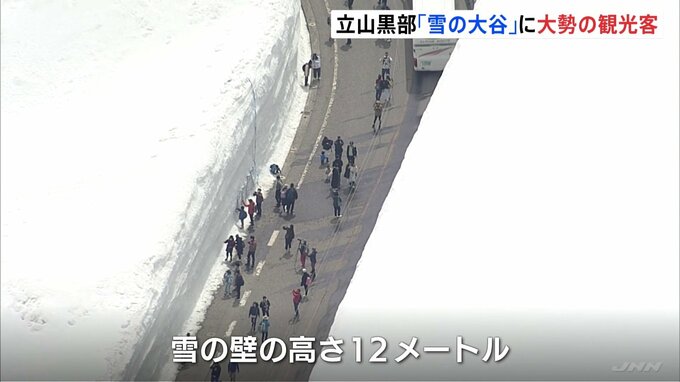 ゴールデンウィークの後半、全国的に天候に恵まれ、行楽地は多くの観光客で賑わっています。記者「富山と長野を結ぶ立山黒部アルペンルート。標高2450メートルの立山室堂エリアでは除雪でできた雪の壁『雪の大谷』…