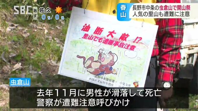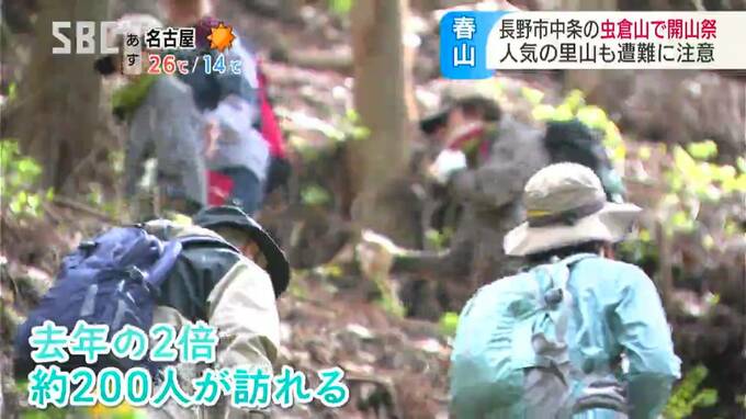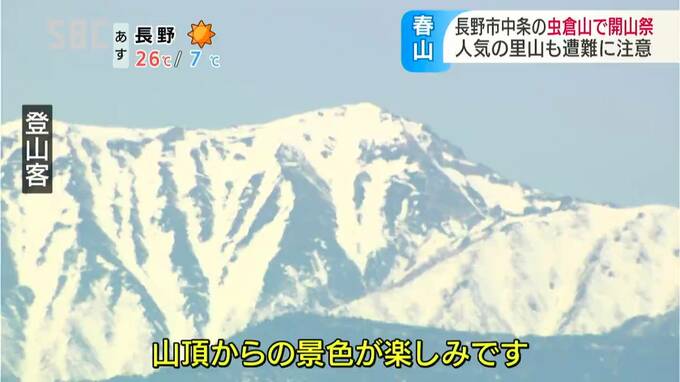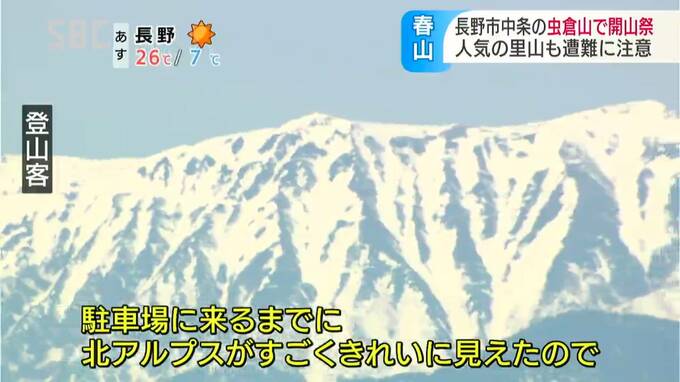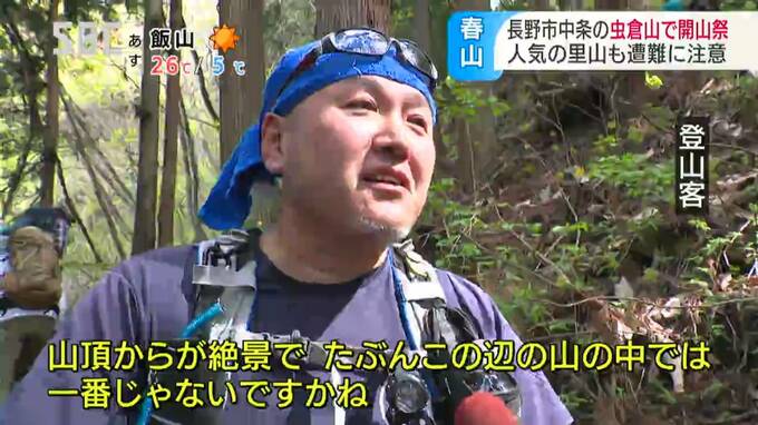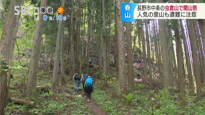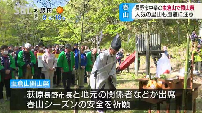 里山登山で人気がある長野市中条(なかじょう)地区の虫倉山(むしくらやま)で3日、開山祭が行われ、あわせて警察が遭難への注意を呼びかけました。