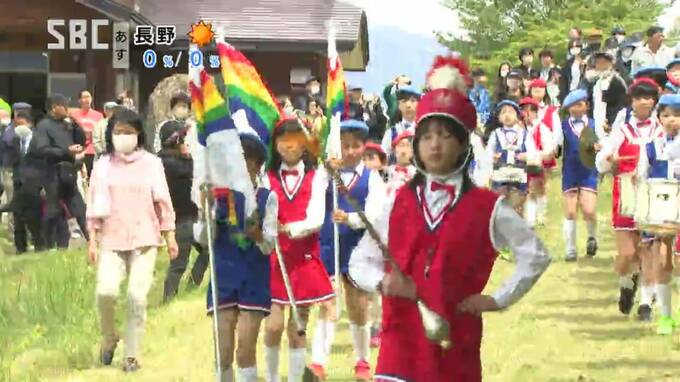 地元小学校の鼓笛隊の演奏で幕を開けた「いいやま菜の花まつり」。