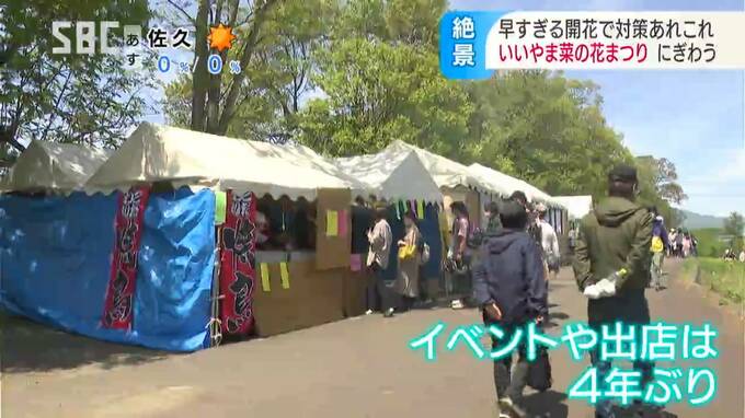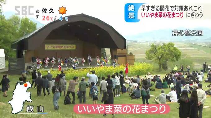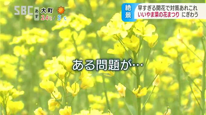 今年は花の生育が早く、関係者が気をもんでいた長野県飯山市の「いいやま菜の花まつり」。