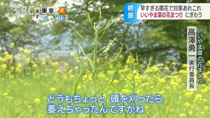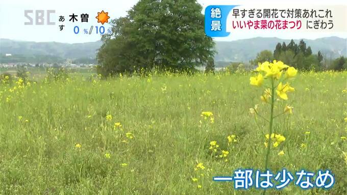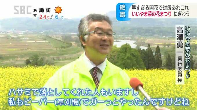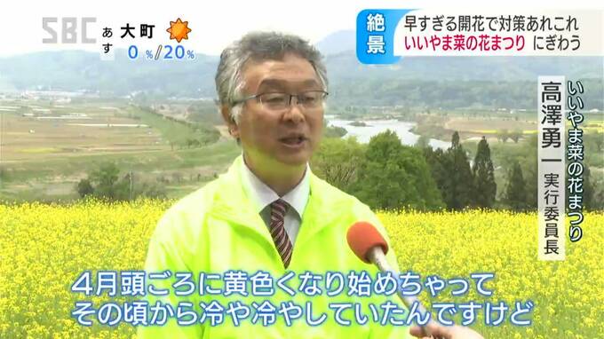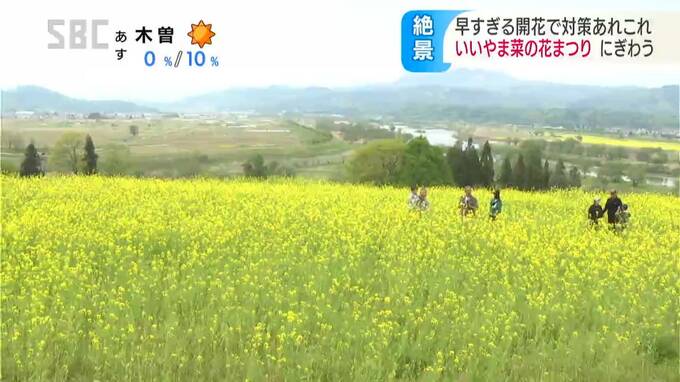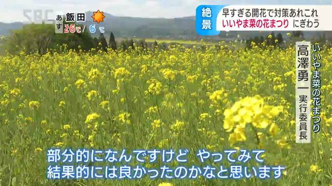 その甲斐あって、北信五岳や千曲川を望む丘の上に、黄色い菜の花の絨毯が広がりました。