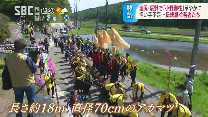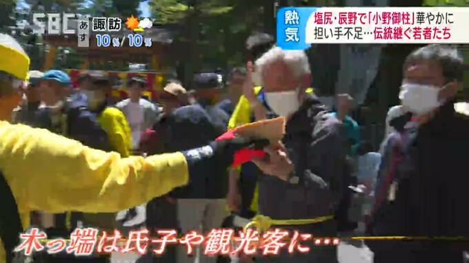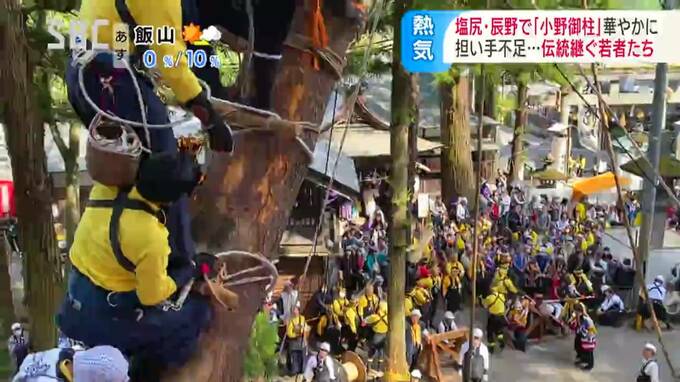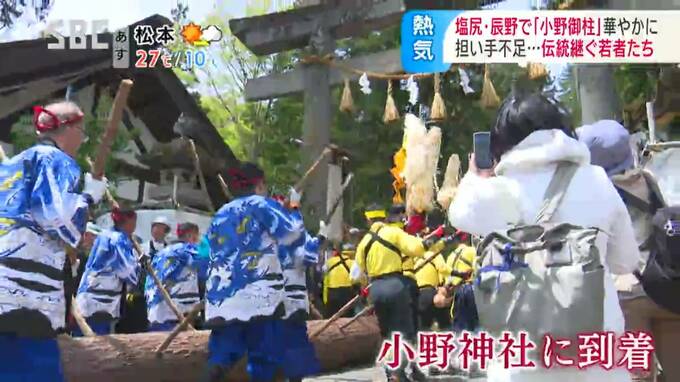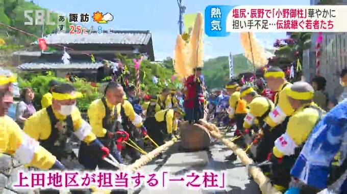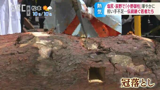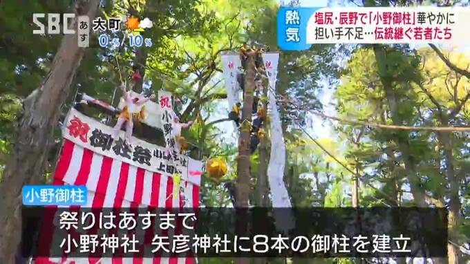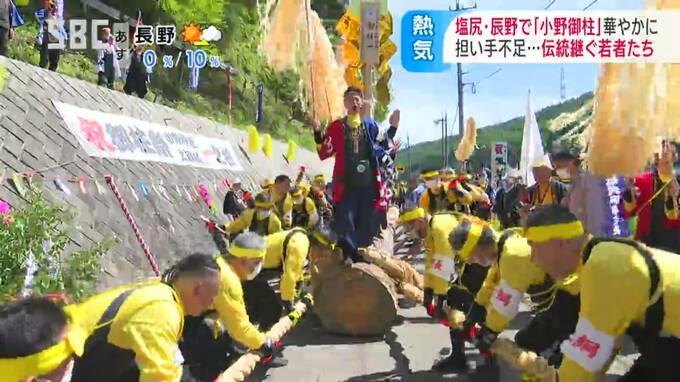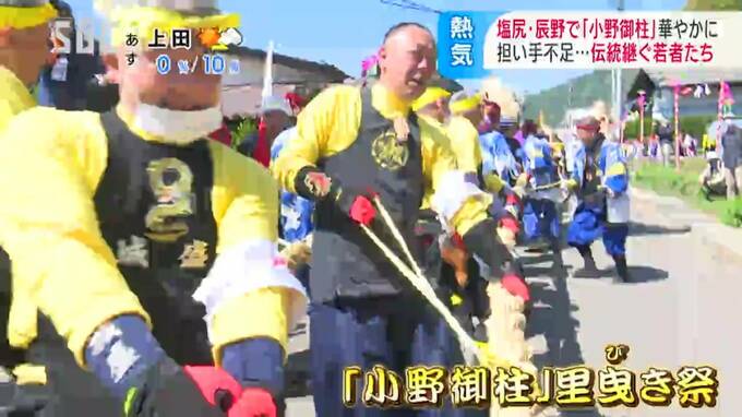 長野県の塩尻市北小野と辰野町小野の隣り合う地域で、3日から「小野御柱(おのおんばしら)」の「里曳き祭(さとびきさい)」が始まりました。