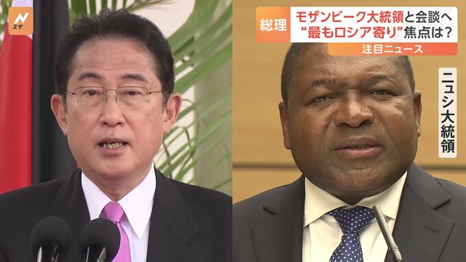 アフリカ歴訪中の岸田総理は、まもなくモザンビークのニュシ大統領との首脳会談に臨みます。訪問した4か国の中で“最もロシア寄り”とみられているモザンビークとどのような会談になるのでしょうか。記者「モザン…