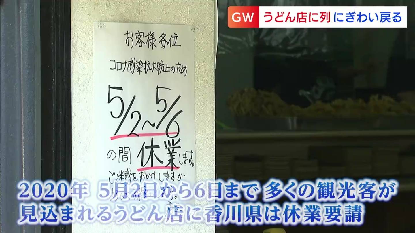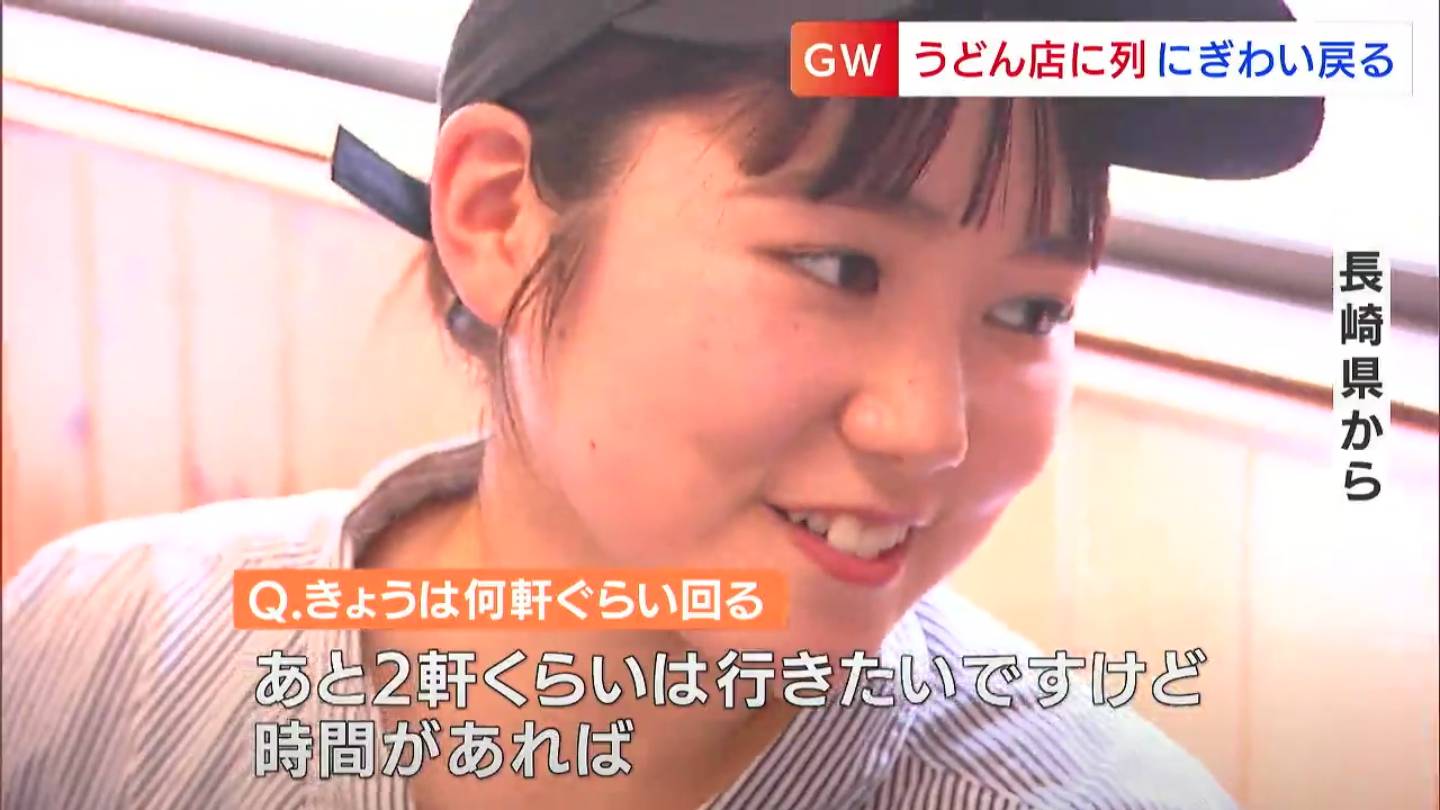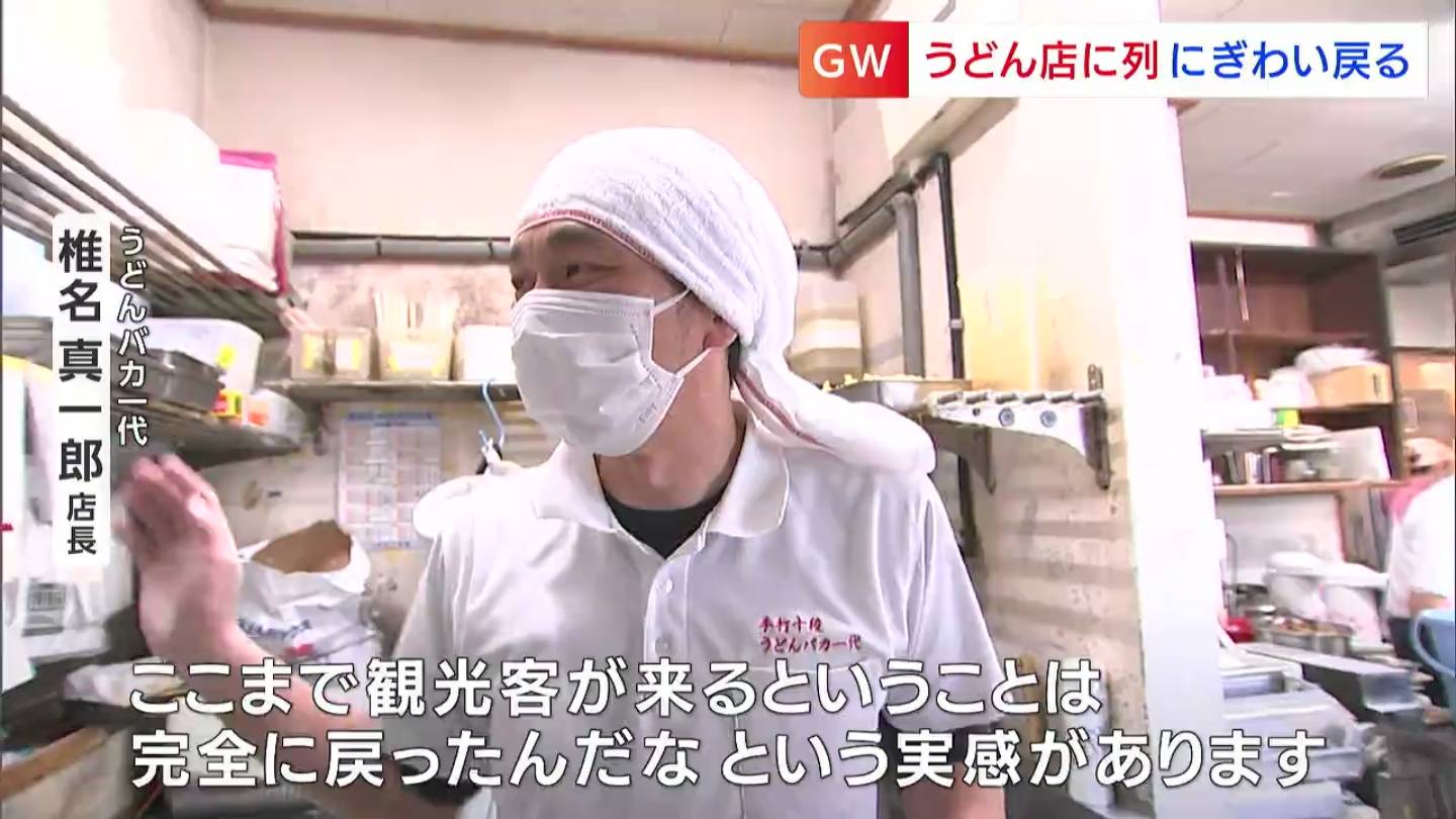 「さぬきの名物」にも賑わいが戻ってきました。ゴールデンウィーク、全国から香川を訪れる多くの人の一番の目的といえば「讃岐うどん」、今年はうどん店に長い行列ができています。