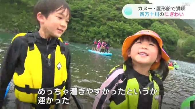子ども連れの家族や若者グループなどに人気なのは、カヌーです。「四万十カヌーとキャンプの里かわらっこ」は、午前と午後、異なるコースを設けカヌー体験を行っています。午前中は県外客ら40人余りが参加。参加者たちはスタッフからカヌーを漕ぐパドルの使い方を教わり、川へ繰り出しました。川面を滑るように進むのがカヌーの魅力。参加者はパドルを漕いで風を感じられたでしょうか?