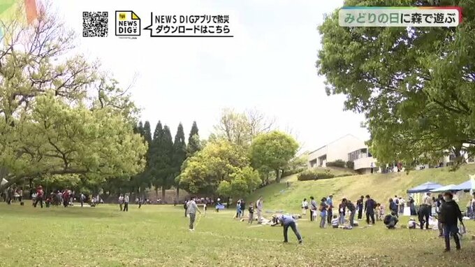 自然に親しみ、自然の恩恵に感謝する「みどりの日」に、山口市で「森フェス」が開催されました。徳地青少年自然の家で開催された「森フェス」は、山口市など3つの団体が主催。子どもたちが森の中で体を使って遊びました。
