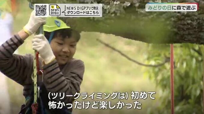 コロナで4年ぶりの開催となる今年、50以上の企画が準備されました。中でも子どもたちの人気を集めたのは、ツリークライミングです。ロープを上手に使って、高いところまでのぼっていきます。