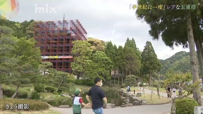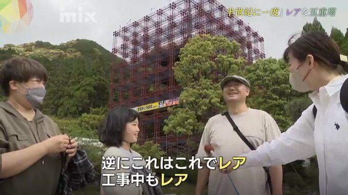 静岡県から観光に来た家族:「(娘が)五重塔が見たいっていうことで、なんとか、先っちょだけ見えるっていうふうに聞いてきたんで、先っちょだけ(笑)まだ隙間から見えるんで良かったです」「逆にこれはこれでレアだよね。工事中もレア」