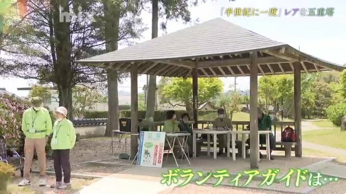 山口市観光ボランティアガイド:「やっぱり残念に思われるので、前に撮った写真を見せたり。50年に1回の姿ですよと言って。五重塔は3年後には見られるので、これは50年に1回だからいうふうな感じで、興味をそそってます」