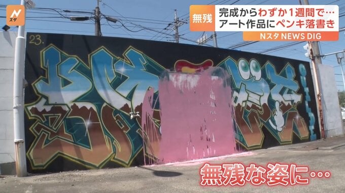 壁に描かれてからわずか1週間後、アート作品が何者かによって落書きの被害に。防犯カメラに犯行の瞬間が写っていました。