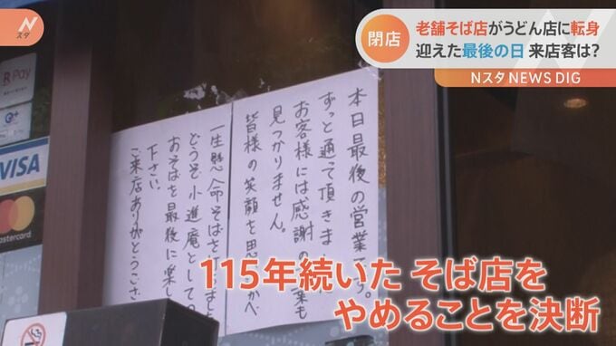 うどん店に転身すると明らかにしていた老舗の人気そば店が115年の歴史に幕をおろしました。「何千、何万回と蕎麦を茹でてきた」という店主。その“最後の営業日”には、たくさんの常連が駆け付けました。