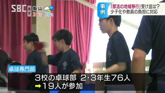 地域の5校のうち3校にある卓球の部員、あわせて76人のうち19人が一緒に練習しています。