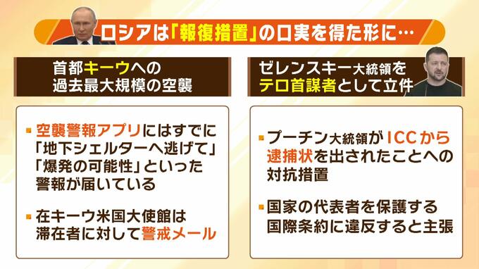 「既に報復措置があったとみられます。5月3日にはヘルソン州で大規模攻撃があり、23人が死亡しました。ゼレンスキー大統領も大きく批判しています。私、今年3月にキーウへ行った際に入れた空襲警報アプリが日本時間の4日朝から何度も鳴っていましました。ウクライナ国内の報道を見ますと4日朝に大規模攻撃があったんですが、ウクライナの防空システムで撃墜して着弾を防いでいるんですね。まだどのような経緯かはわかっていないのですが、今後も、口実として、ロシア側の攻撃が激化する可能性はあると思いますし、ウクライナ側もそれを警戒しております。そしてゼレンスキー大統領をテロの首謀者として立件することの意味は、既にこの事件は、果たして実際どういうものがドローンだったのかや誰がやったのかはわからぬまま、既にロシアの捜査当局は、ウクライナ側の犯行ということを断定して、捜査に入っています。その首謀者をゼレンスキー大統領として立件して逮捕状を取ることに意味がある。そこに自作自演があるということなんだと思います」