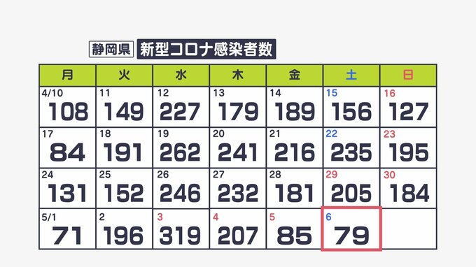 静岡県内では5月6日、新たに79人が新型コロナウイルスに感染したことが分かりました。1日あたりの感染者数が100人を切るのは2日連続です。