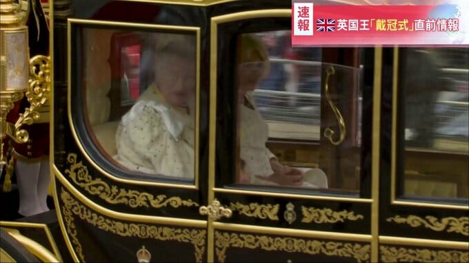イギリスのチャールズ国王は、まもなく始まる戴冠式に向けて、ついさきほどバッキンガム宮殿を出発しました。チャールズ国王は日本時間午後6時20分ごろ、カミラ王妃とともに馬車でバッキンガム宮殿を出発しました…