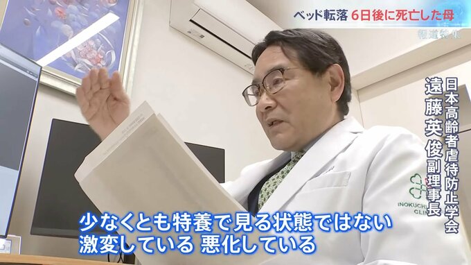 日本高齢者虐待防止学会の副理事長・遠藤英俊医師は、記録を見る限り現場の対応に疑問があるとした。