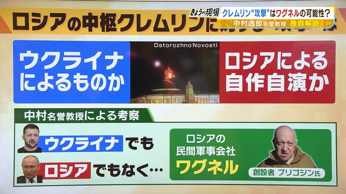 ロシアの中枢・クレムリンへのドローン攻撃が行われましたが、ウクライナによるものなのかロシアによる自作自演なのかというところなんですが、先生はどうお考えでしょうか?