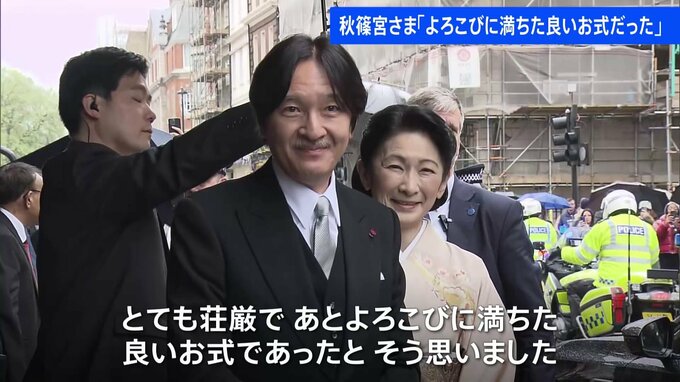イギリスのチャールズ国王の戴冠式に参列した秋篠宮さまは「よろこびに満ちた良いお式だった」と感想を述べられました。秋篠宮ご夫妻は日本時間の6日午後5時ごろ、戴冠式に出席するため宿泊先のホテルを出発されま…