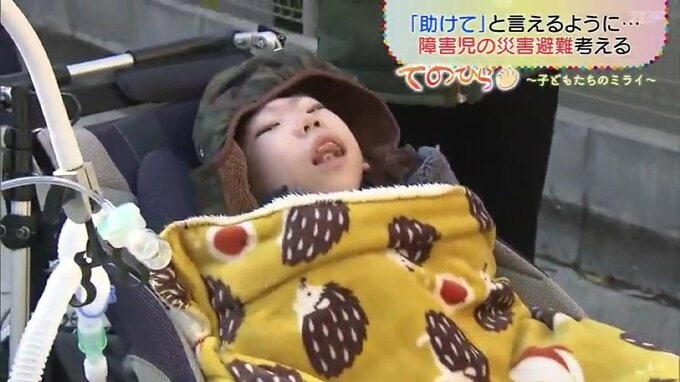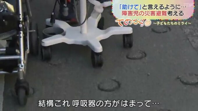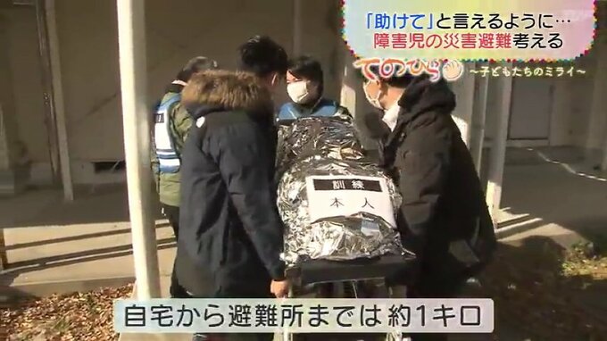 呼吸器とともに進むバギーに乗っているのは、笠間理恩さん(12)。心身に重い障害があり、自分で体を動かすことができません。冬の寒い日だったこともあり、災害用のブランケットを羽織り、スタッフが体調を観察しながら、訓練が続きます。
