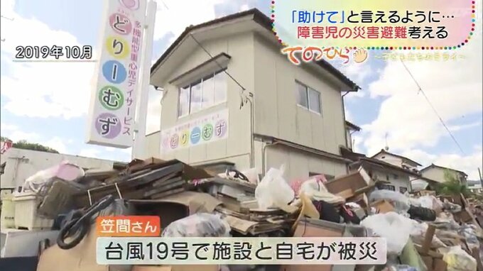 2019年の台風19号で、施設と自宅が水没した笠間さん。スタッフや利用者も、大きな被害を受けました。あの日、笠間さんは、理恩さんたちとともに、車で避難所までは行ったものの「迷惑がかかる」と、駐車場で車中泊をして過ごしました。理恩さんに必要な医療機器の電源は、乗っていた車からとりました。