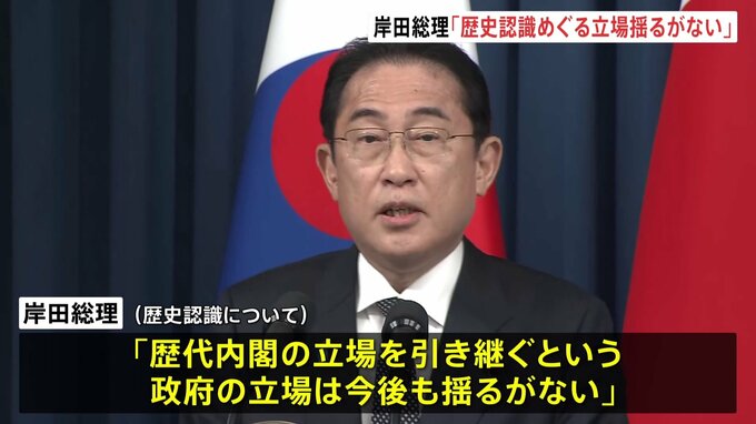 岸田総理は、ソウルで行われた日韓首脳会談の後の会見で、歴史認識をめぐって「歴代内閣の立場を引き継ぐ方針は揺るがない」と強調しました。岸田総理「私自身、当時厳しい環境の下で多数の方々が大変苦しい、そし…
