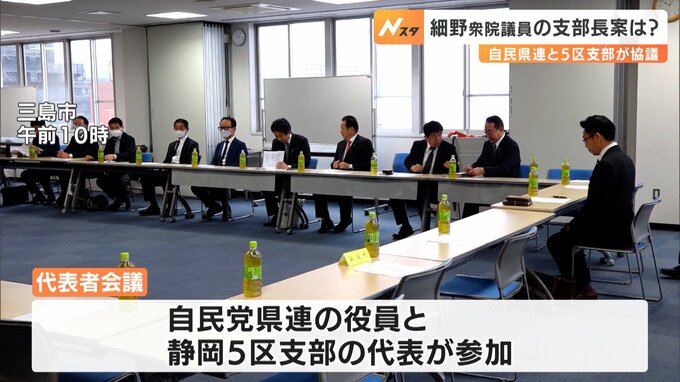 吉川赳衆議院議員が自民党を離党して支部長不在のままの静岡5区をめぐって、自民党県連は細野豪志衆議院議員を支部長とする案について地元支部に説明しました。5月7日、静岡県三島市で開かれた会合には自民党県連…