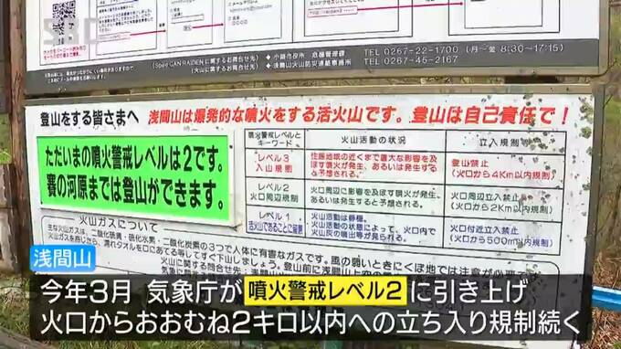 浅間山は、火山性地震が増えたことなどから、3月23日に気象庁が噴火警戒レベルを2に引き上げ、火口から概ね2キロ以内への立ち入り規制が続いています。