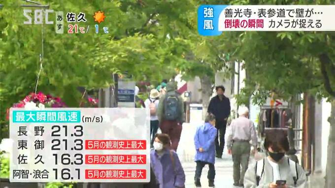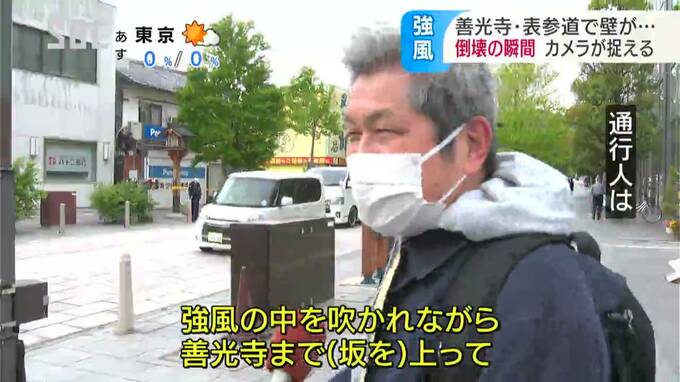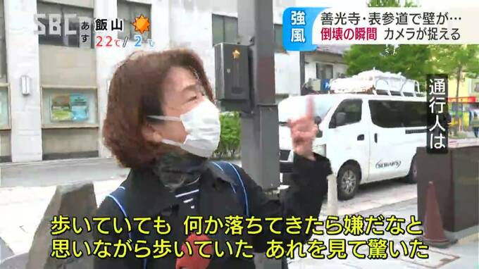 「強風の中を吹かれながら善光寺まで(坂を)上って、(風が)凄い強かった。上がるのを戻されるくらい強い感じだった」 「歩いていてもなんか何か落ちてきたらいやだなと思いながら歩いていた。あれを見て驚いた」