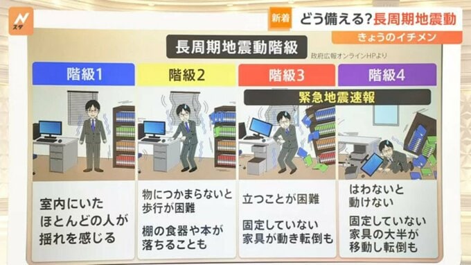 「長周期地震動」には震度ではなく、「階級」というものがあります。揺れの大きさを示すものです。