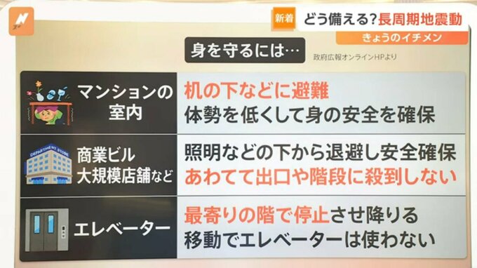 「長周期地震動」は“周期の長い大きな揺れ”で、高い建物などが大きく揺れる傾向にあります。マグニチュードが大きい地震ほど発生しやすく、数百キロ離れた場所でも大きく揺れ、高層階ほど大きく揺れやすいということです。
