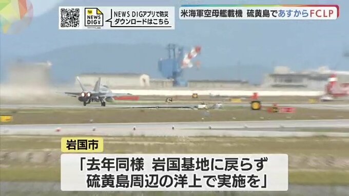 アメリカ軍岩国基地を拠点とする空母艦載機は、あすから硫黄島で陸上での模擬着艦訓練FCLPを行います。