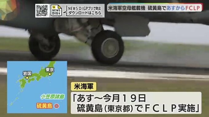 アメリカ海軍はあすから今月19日にかけて東京都の硫黄島でFCLPを行うと発表しました。