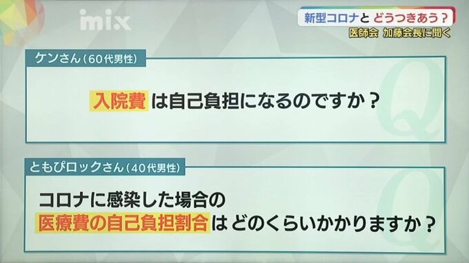 「コロナに感染した場合の、医療費の自己負担割合はどのくらいかかりますか?(ともぴロックさん、40代男性)」