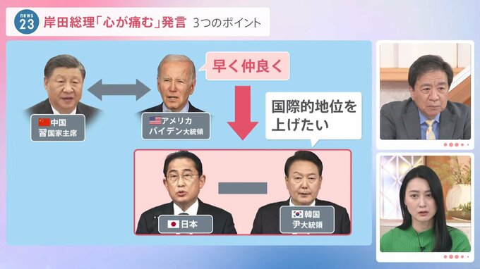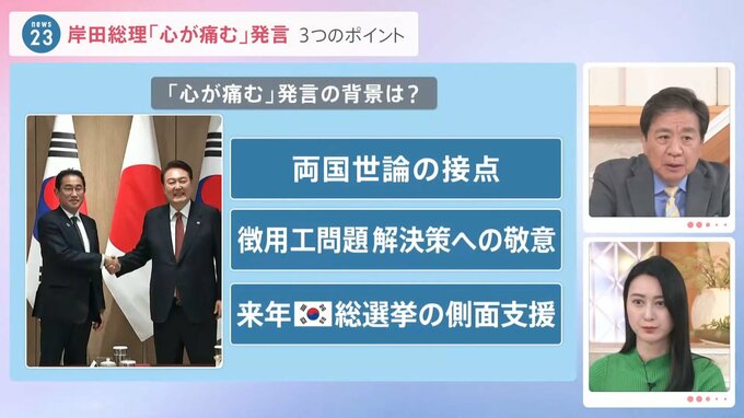 小川彩佳キャスター:日韓首脳会談で岸田総理「心が痛む」という、ある意味、踏み込んだ発言がありました。この背景はどうなのでしょうか?