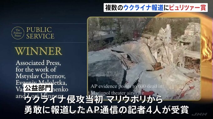 アメリカで優れた報道を称えるピュリツァー賞が発表され、ロシアによるウクライナ侵攻についての報道が複数選ばれました。今年の受賞者は8日に発表され、最高の栄誉とされる「公益部門」では、侵攻当初、民間人の…