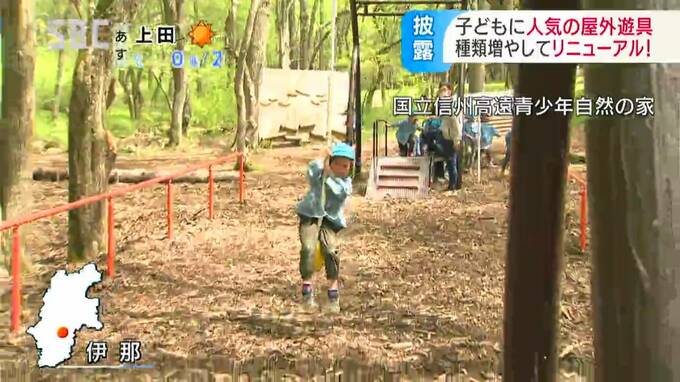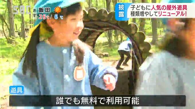 伊那市で子どもたちに人気の屋外遊具がリニューアルし、9日、お披露目されました。