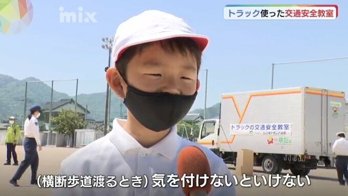 山口県山口市の小学校でトラックを使った交通安全教室がありました。