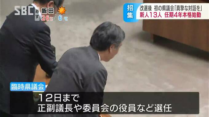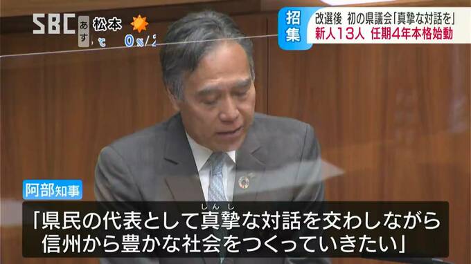 本会議は午後4時から開かれ、阿部知事は「県民の代表として真摯な対話を交わしながら、信州から豊かな社会をつくっていきたい」とあいさつしました。