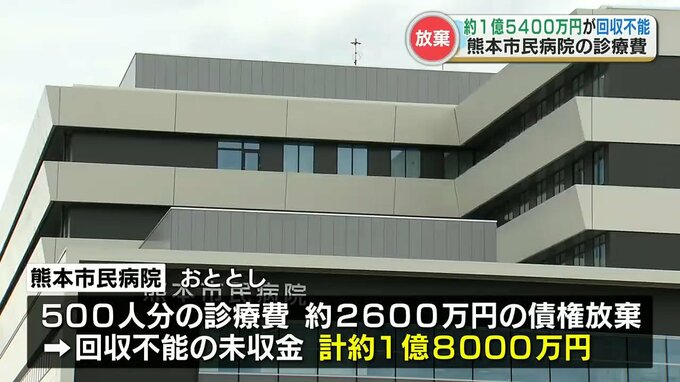 熊本市民病院の診療費、約1億5400万円が回収できないまま時効を迎え、今年3月債権放棄されていたことが明らかになりました。